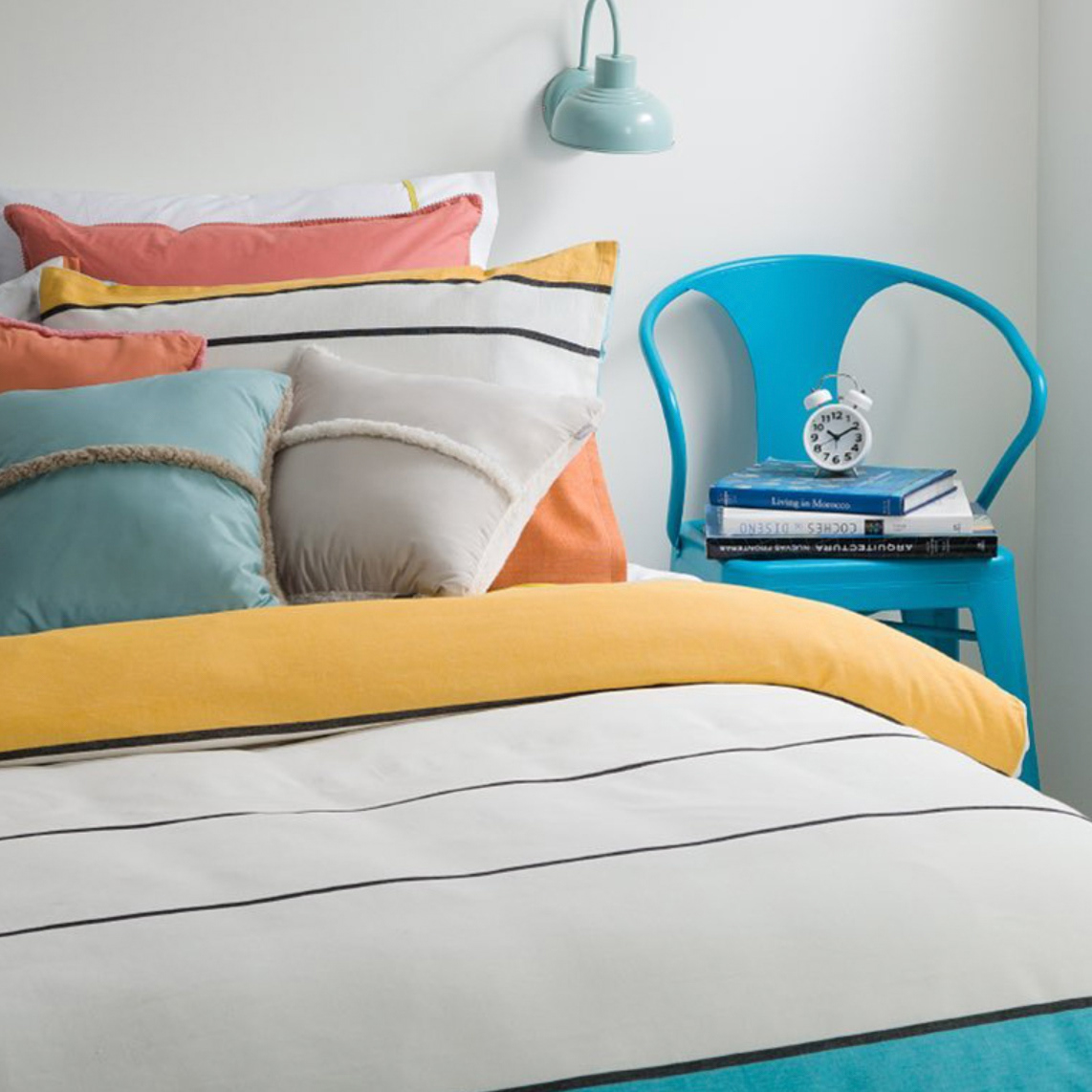 Grandes superficies de color caracterizan a estos nobles diseños tejidos con hilos 100% algodón que aportan una calidez única al dormitorio.