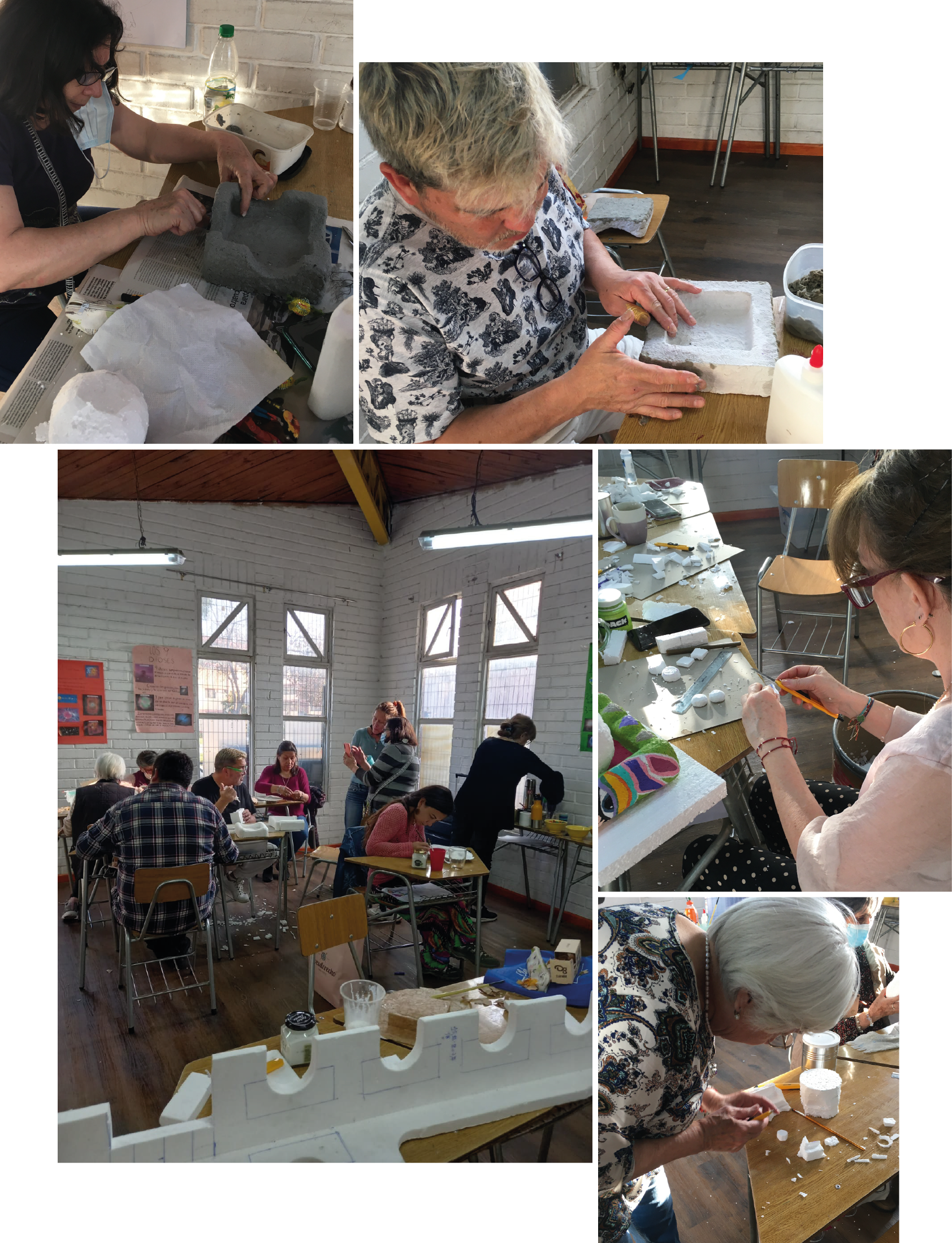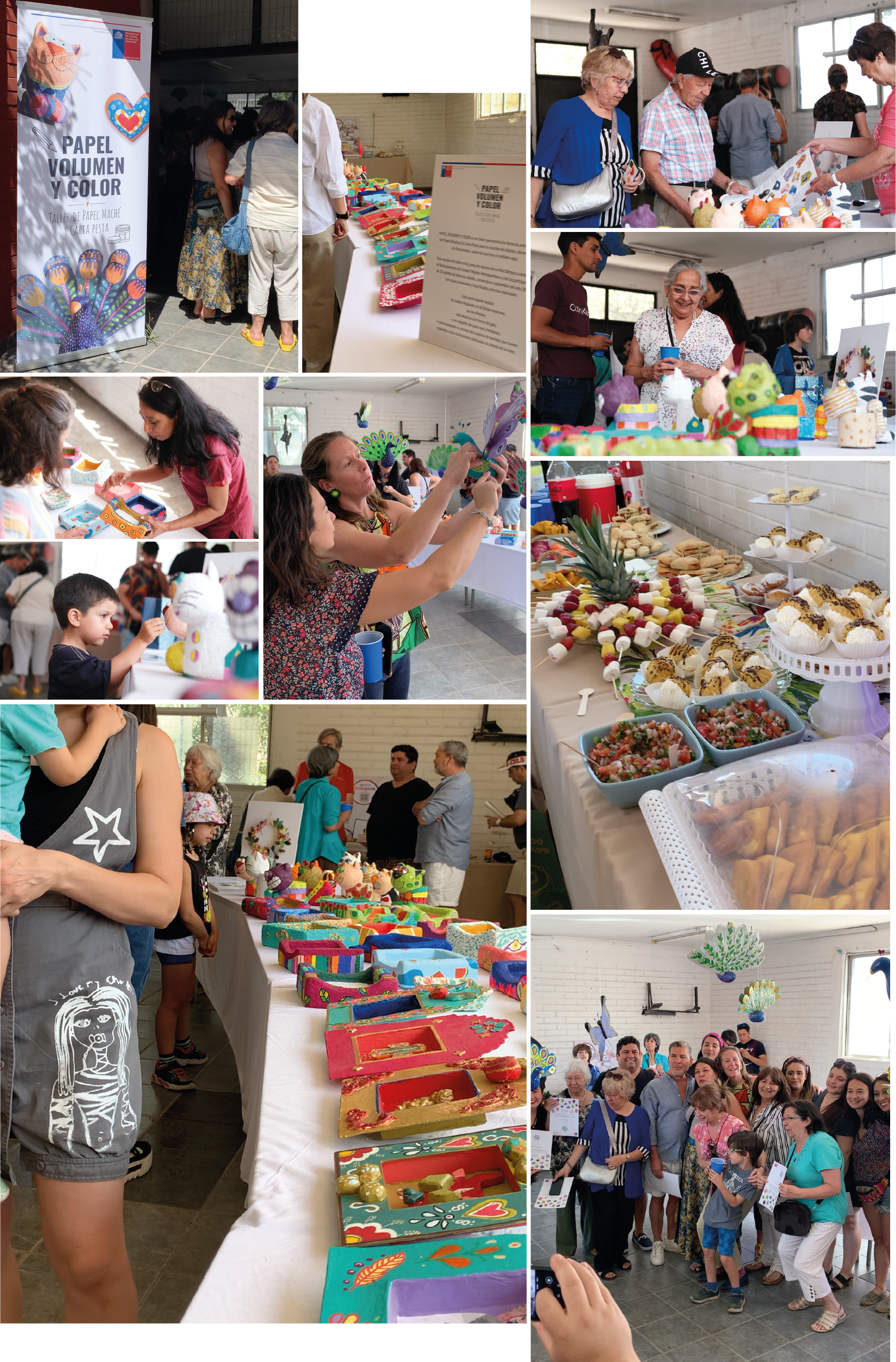 Durante el segundo semestre del año 2022 realicé la nueva versión del taller “Papel, Volumen y Color” a veinte adultos interesados en enriquecer su experiencia artística a través de la realización de objetos volumétricos utilizando la técnica del papel maché y la carta pesta. Las clases se realizaron de forma presencial en la JJVV de la Villa Olimpica, ubicada en la comuna de Ñuñoa, en la ciudad de Santiago de Chile y la experiencia culminó con una exposición de todos los trabajos realizados por los alumnos durante estos 5 meses.
