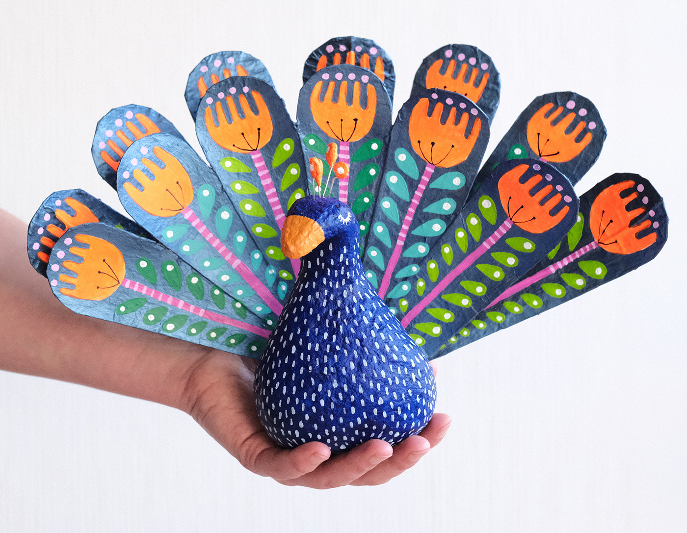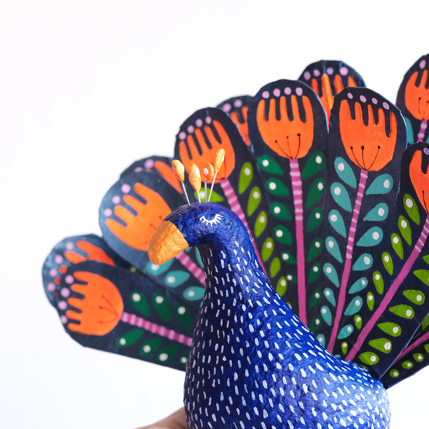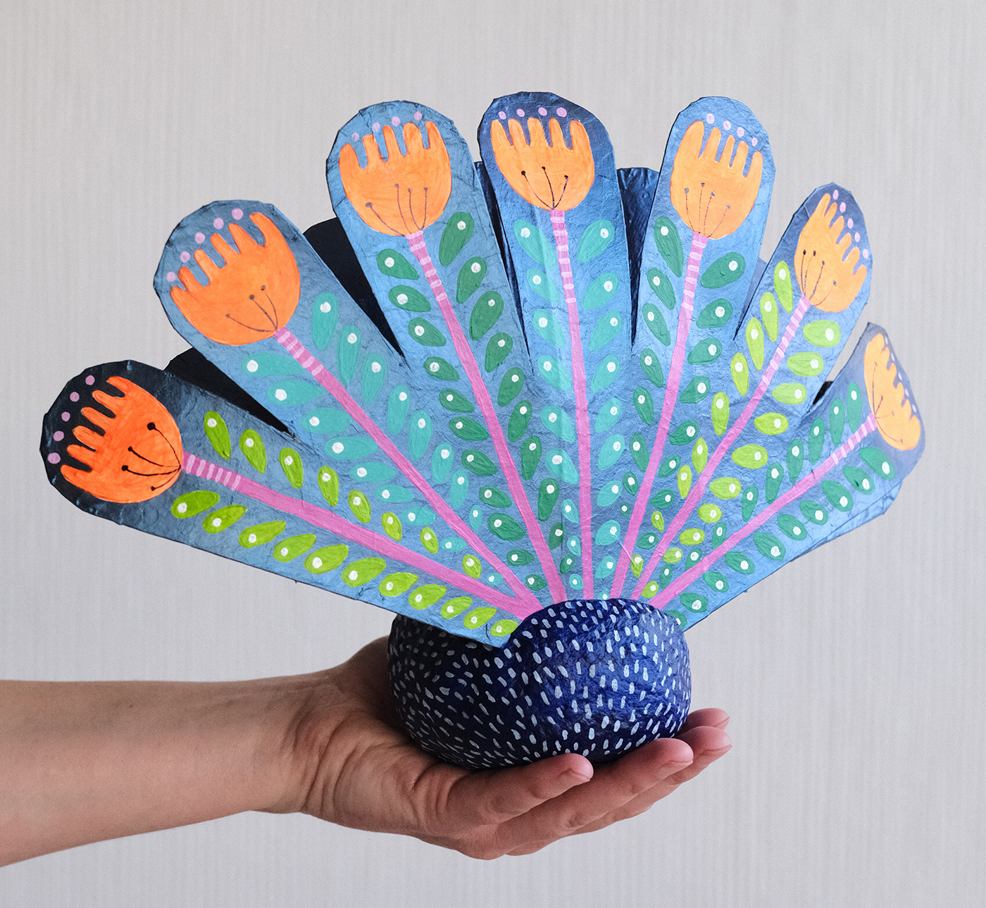 Hace rato rondaba en mi cabeza la idea de hacer esta figura fusionando las técnicas del papel maché con la de carta pesta, la primera para hacer el cuerpo y la segunda las plumas florales hasta que la concreté y me encantó el resultado!